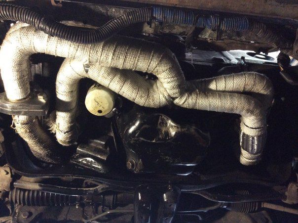 Были установлены — коллектор нержавеющий равнодлинный, укутан термолентой Billion 1650 градусов, новый турбина TD04L, клиент захотел остаться на турбине родного размера, а так же полностью заменены выхлопная трасса на прямоточную в внутренним диаметром 80мм.