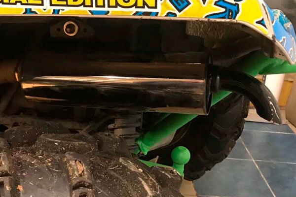 Разработанная нами выхлопная система для Yamaha Grizzly 700, диаметр турбы 45мм, материал нержавеющая алюминизированная сталь, толщина стенки 2.0мм, специально сконструирован для увеличения мощности по всем рабочем диапазоне, дает хороший подхват и динамику относительно стандартного выхлопного тракта, так же решена проблема с подвижным соединением, оно заменено на флянцевое с подвижной гофрой.